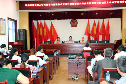 本网讯(通讯员 杨兴翠)8月17日,县委宣讲团到木卓镇,就深入学习贯彻习近平总书记系列重要讲话精神和考察云南重要讲话精神进行宣讲。该镇党委政府班子领导、干部职工、村“三委”成员共100余人聆听宣讲报告。