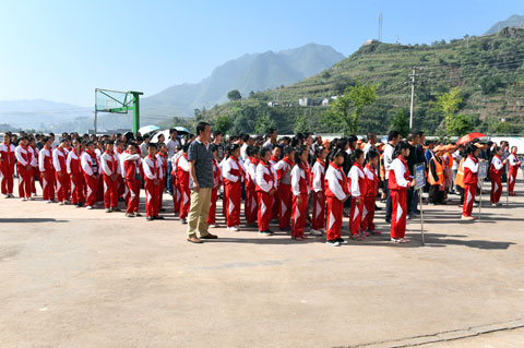 泼机镇第二小学四2班的刘红梅代表中小学生发言时说:“我们要自强不息、立志成才,勇担责任,诚信做人,把感恩的思想运用到日常的学习和生活中。”