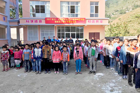 “十年百校”项目是浙江省寅幸慈善基金会于2013年在云贵地区“精准扶贫”工程的其中一个重点项目。该会主要根据云贵偏远地区学校的实际困难,针对性的开展学校重建或修缮,改善学校的整体教学环境。营盘小学的重建,为三合村义务教育均衡发展奠定了坚实基础。