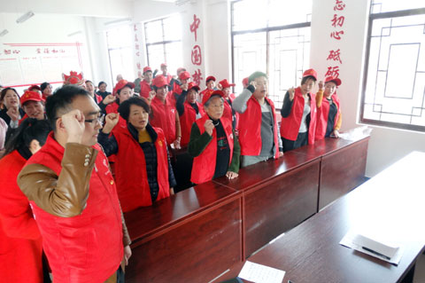 在当天的卫生服务志愿队成立仪式上,县妇联负责人作了动员讲话,赞赏了志愿者们退而不休、闲有所为的奉献精神;县总工会负责人把志愿队队旗授予了志愿队;团县委负责人带领大家进行了志愿宣誓。