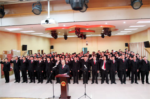 “我宣誓:忠于中华人民共和国宪法,维护宪法权威,履行法定职责,忠于祖国,忠于人民,恪尽职守,廉洁奉公,接受人民监督,为建设富强、民主、文明、和谐的社会主义国家努力奋斗!”这是县法院全院干警的铿锵誓词。这一誓词时刻提醒干警,作为法院人,生来只有一个目标,就是“努力让人民群众在每一个司法案件中感受到公平正义”。