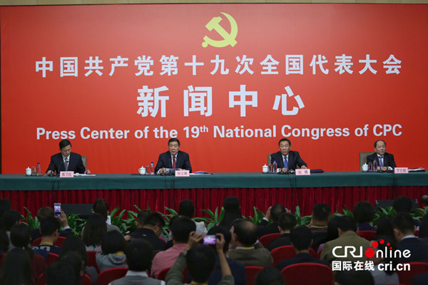 10月21日15:00,十九大新闻中心举办记者招待会,请国家发展改革委党组书记、主任何立峰等介绍中国经济发展有关情况,并回答记者提问。摄影:沈湜