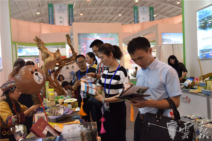 原来,为了更好地向外宣传推介镇雄丰富的旅游资源,在商洽会上,镇雄县在开展企业商品展的同时,还在旅游馆内专门设置了旅游宣传推介区,对外积极宣传推介镇雄丰富的旅游资源,借力“商洽会”的大舞台开拓旅游市场。