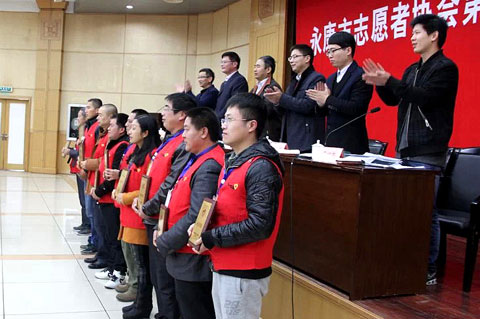 镇雄驻永康志愿者服务队成立于2013年10月,是永康市首支在外来务工人员中成立的志愿者服务队,也是全国首支镇雄务工者在外成立的志愿者服务队。参与五水共治、爱心献血、爱老敬老、助学救贫、“送姜茶、暖民心”、送农民工返乡过节、代购农民工返乡车票、为民工返乡送行李、为外来民工送冬衣、为鲁甸地震灾区募集善款、赴鲁甸地震灾区开展后勤保障志愿服务……服务队成立的时间不长,但参与的志愿工作可不少。而且,这支队伍不断壮大,由最初的20人发展到目前的169人,形成了比较完善的工作机制。今后,服务队将继续开展公益活动,为老乡和驻地提供各种志愿服务。