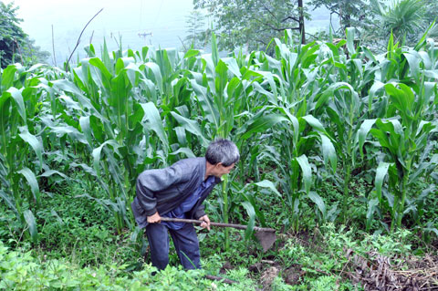 见到老刘的时候,他正忙着疏通玉米地里的积水。昨夜的一场暴雨,低洼地带到处冒水,甚至一片泽国,如不及时挖沟整渠,这长势喜人的玉米将前功尽弃。小暑过后的地内,玉米成林、叶片锋利,汗水顺着他的脸颊,一直流到玉米叶上、流到黄土地里,但他不言苦累,一铲一锄仍然做得那么细心。