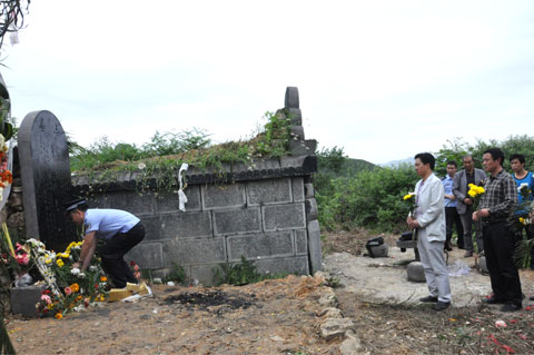 当天,黄金泉一行踏着泥泞崎岖的山路,赶往廖富书的墓地,行军礼、敬献鲜花,祭奠长眠于地下的英雄,表达心中的敬意。