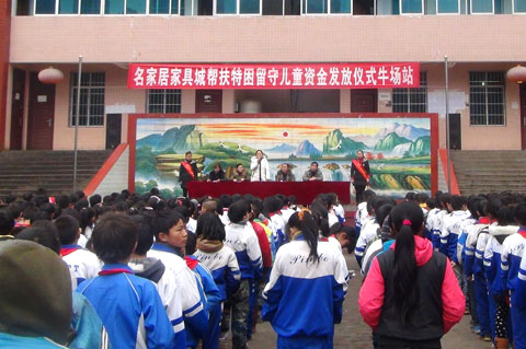 12月20日下午,由县妇联牵头组织的“名家居家具城帮扶特困留守儿童资金发放仪式”在牛场镇中心小学举行。