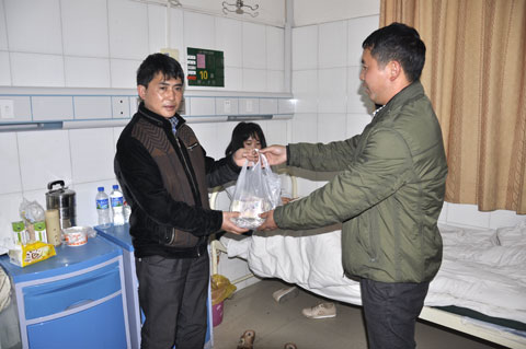 “感谢同学们的爱心。无论再苦再难,我也一定要把孩子治好,让他早日回到学校。”在县人民医院病房内,刘仕莲的父亲刘永军接过师生们捐赠的钱,感动地说。