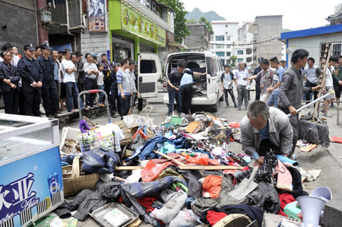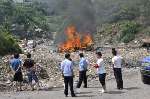 现场会后,所有展示的查扣物品被一一装上货车,运往县城垃圾处理厂集中烧毁。