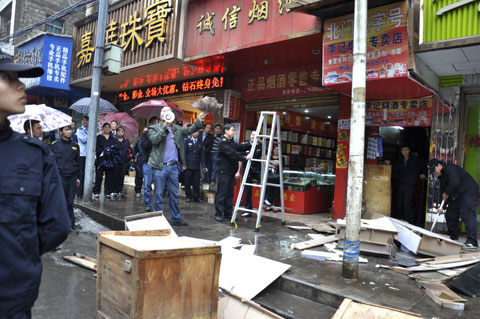 特别是在对世贵街某商户长期霸占公共通道、强占人行道经营行为的执法过程中,联合执法组现场说理说法,边执法边宣传环境整治的目的、意义和依据,果断向“钉子户”亮剑,赢得过往群众的支持。同时,通过向顽固不化者坚决亮剑,对心存侥幸者形成有力震慑。