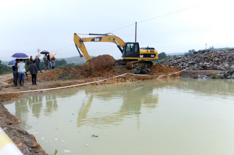 县城南部新区范围内,在建工程点多面广,城市主干道三个标段、1号和2号安置点等一批项目工程的实施,使建设工地自然形成了一些塘坝。由于连日来持续降雨,雨水灌满了这些塘坝,给周边村民尤其是孩童带来安全隐患。针对这一实际情况,南部新区指挥部组织力量,按照当填则填、宜疏则疏的原则,集中消除这些塘坝存在的安全隐患。当天,指挥部组织挖掘机、装载机,填埋了位于2号安置点的一个较大塘坝;挖通了位于城市主干道二标段的一个塘坝的排水沟,把塘坝里的储水全部排除。同时,责成1号安置点附近村民,人工挖通了该安置点附近的一个塘坝的排水沟,把塘坝里的水成功排出。