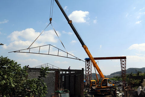 记者国庆长假期间跟踪观察发现,位于该标段路基范围内的禹和石材工艺加工厂、鲁保轩建材厂、高山洗煤厂3家企业业主组织工人,陆续搬走厂内设备设施,拆除厂内建筑物。截至10月7日,禹和石材工艺加工厂内的生产设施已基本搬走,生产厂房已夷为平地,只剩下输送设备和为数不多的石材原材料和工艺品,厂房前方的土地已实施清表。鲁保轩建材厂内的水泥砖已全部运走,路基范围内的业务用房已经拆除。高山洗煤厂内的磅称已经拆除、运走,部分业务用房已经拆除。庆嵩园林苗圃基地内的苗木清点工作已经完成,据介绍,新基地地址已经落实,业主表示不会影响骨干路网施工。