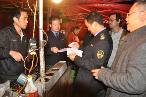 执法人员重点检查了夜宵摊点从业人员是否持有效“健康证”,食用油、冷冻食品、肉制品等食品采购是否有索证索票,查验记录台账和合法购销渠道,餐具是否消毒、是否有保洁措施,现场加工条件是否符合要求等。通过集中整治,摸清夜宵摊点底数、食品供应商的渠道情况,提高夜宵摊主守法自律意识,改善夜宵摊点的饮食加工条件,有效消除夜宵摊点饮食安全隐患。