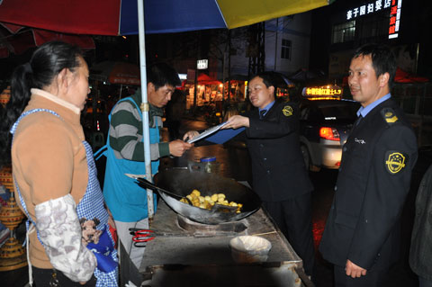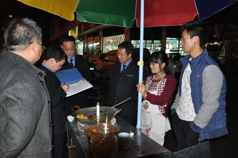 当晚,县食品药品监督管理局执法人员在各街道办事处食安办及社区工作人员的配合下,分两个整治组对城区100余家夜宵摊点进行摸底、登记、调查、整改,进一步加强小餐饮行业特别是夜宵摊点的规范管理,营造和谐、卫生、有序的餐饮消费环境。