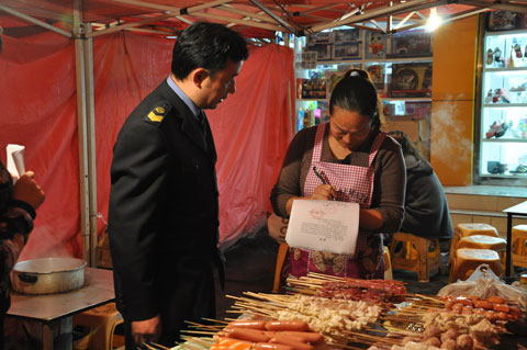 “办健康证整啥子?去哪里办?”“你们办了健康证对大家都好,要保证身体健康才能做给别人吃。先去县医院或县疾控中心体检办健康证,5天之内去乌峰食药监管所备案。”在整治现场,执法人员耐心答疑。