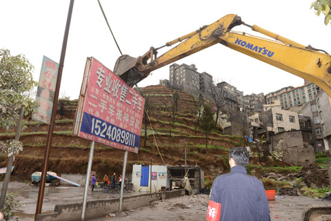 上午9时起,执法队伍依次强制拆除了龙泉洗车场、鹏全洗车场、西环路停车场、瓦世界、西环路水塔厂、宝林木业、鸿运洗车场等7户违法搭建的建筑物、构建物。每到一处,执法队伍均耐心与经营者沟通、划定警戒线、劝退无关人员,确保了强拆工作顺利、安全进行。