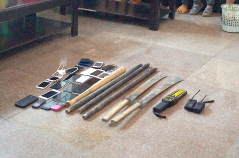 7月12日,县公安局巡特警大队在花朗乡文阁村捣毁一聚众赌博窝点,查处涉赌人员20余名,现场缴获赌资3万余元、赌具一副、管制刀具6件。