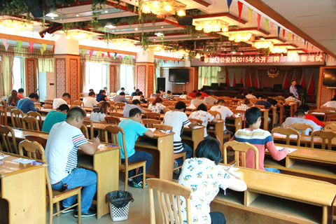 招聘工作7月中旬正式启动以来,通过报名、政审等初选程序,有60余名男女青年符合招聘条件。8月16日上午,审查合格的60余名社会男女青年在县公安局参加了法律法规知识笔试。