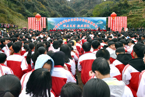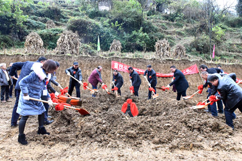 仪式现场,彩旗飘飘,人山人海,严寒也阻挡不了当地群众迫切想要搞旅游开发的热情。在雨河镇主要负责人宣布正式开工,并和参加奠基仪式的来宾共同挥锹铲土为项目奠基之后,两台挖掘机缓缓驶进场地,开始有序施工。