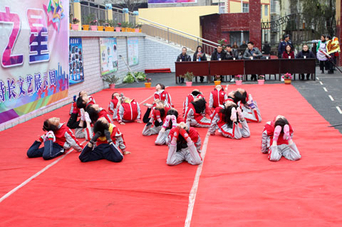 “台上一分钟,台下十年功”。随着优美的旋律,太极拳小组迈着稳健的步伐上场了。他们时而抱拳,时而踢腿,时而金鸡独立,打得有模有样,充分展示了我国武术的博大精深。
