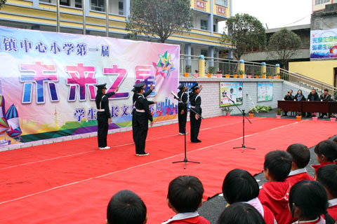 鼓号队奏响了乐曲,护旗手雄赳赳、气昂昂地走向旗台,雄壮的国歌一响,他们就擎起了国旗,全体师生凝望着冉冉上升的国旗,心中满是自豪。此次活动在升旗仪式中拉开了序幕。