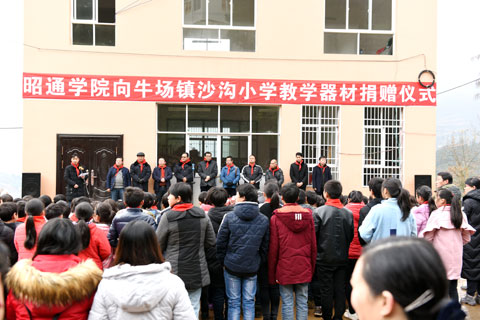 昭通学院党委书记邬永飞出席捐赠仪式并讲话,表示愿从细微做起,切实为孩子们送温暖,发扬尊教助学、扶危济困的传统美德,以奉献爱心、互帮互助的友善之举,争做创建的志愿者、文明的先行者;希望沙沟小学和沙坝小学合理用好这批“爱心器材”,以“手牵手、心连心”结对帮扶活动为契机,深入开展素质教育,让学校有特色,让教师有特点,让学生有特长;希望孩子们心怀阳光,积极进取,珍惜上学机会,坚定自信,珍惜时光,努力学习,天天向上,积极锻炼,全面发展,成长为有用之才。