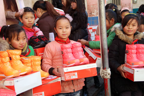 据泉水基金会负责人介绍,此次捐赠冬鞋,是泉州市丰泽区泉秀幼儿园小朋友通过义卖自己做的手工物品筹集的善款所购。小朋友们希望自己的小小爱心,能让地处偏远高寒贫穷山区的孩子们在寒冷的冬天享受一点温暖,为山区早日脱贫贡献自己的绵薄之力。