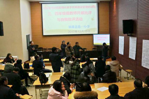 本网讯(通讯员 张秋英 童大琼 李永权)连日来,县第一小学在阶梯教室对标县委书记翟玉龙的讲话及县教育局关于转变工作作风的通知精神,开展批评与自我批评活动。